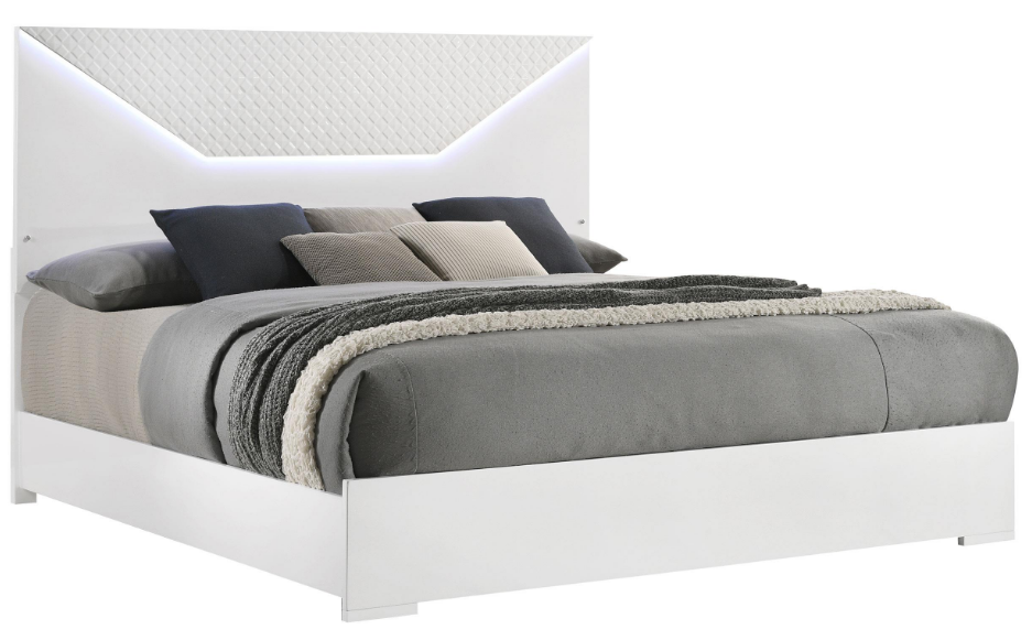 Contemporary eastern king bed with white high gloss finish and modern Italian style