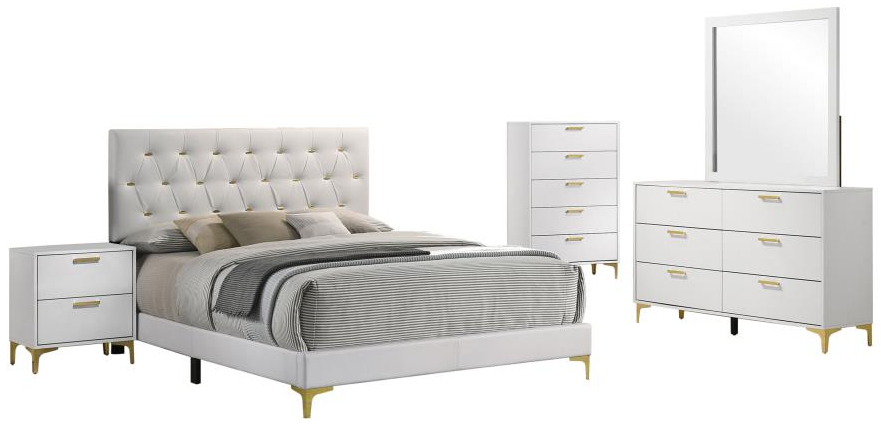 This 5-piece bedroom collection features a crisp white finish with clean, simple lines for a fresh and airy feel. It combines style and practical storage, enhancing the comfort and functionality of your bedroom space.Read More