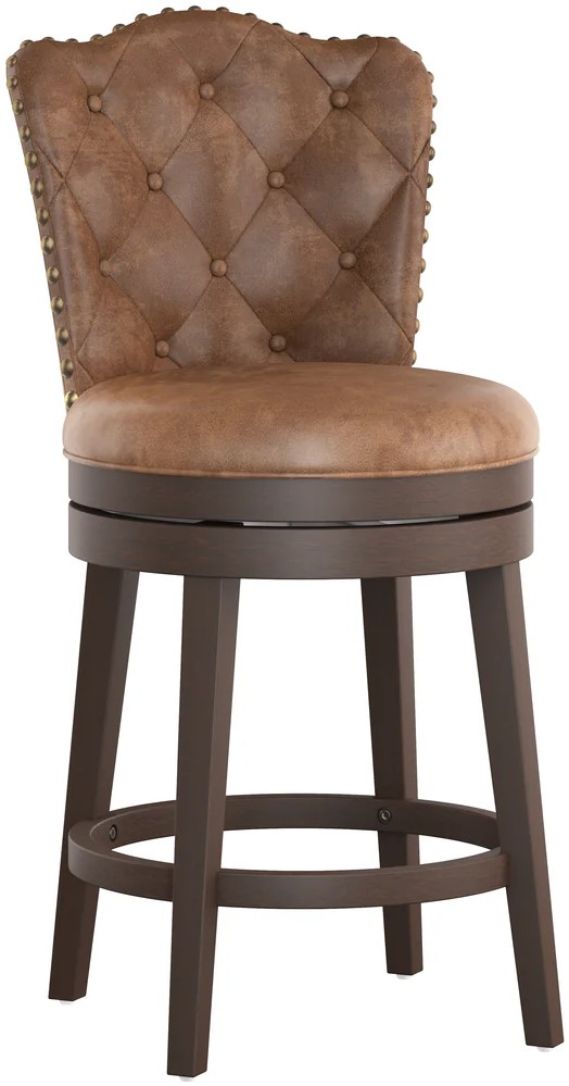 Classy and elegant, the Hillsdale Furniture Edenwood Swivel Counter Height Stool is reminiscent of English pubs with all the comforts of modern style. Chestnut Brown faux leather with button tufting and nail head trim is timeless, while the compound arch and welt piping around the seat elevates the style and shows attention to detail.Read More