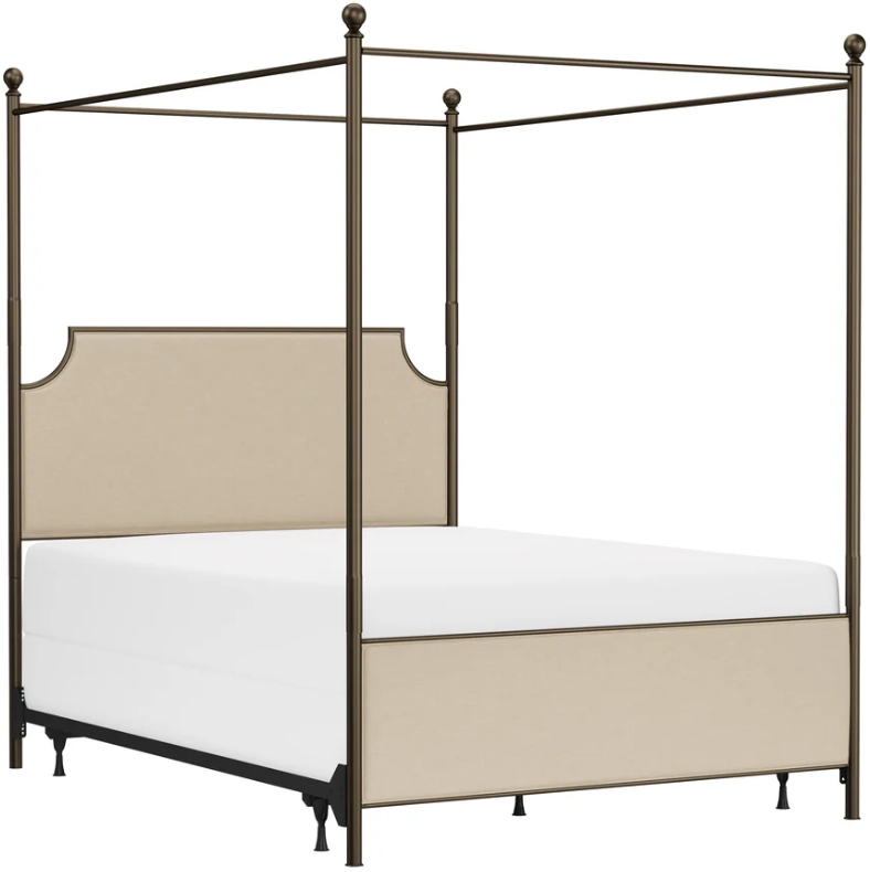 This sophisticated bed set elevates any bedroom with its clean lines, simple curves, and elegant canopy frame. Upholstered in a beige fabric and constructed with a complementary bronze steel, this set fits seamlessly into a wide variety of color schemes and aesthetics.Read More