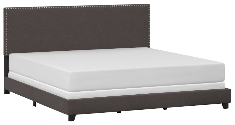 Drift off to dreamland in style with the fully upholstered Willow King Bed, a pick that pairs a traditional silhouette with bold silver hued nail head trim. Paired with a neutral charcoal fabric, and espresso finished feet, this bed is dramatic, yet simple, and blends well in most décor,Read More