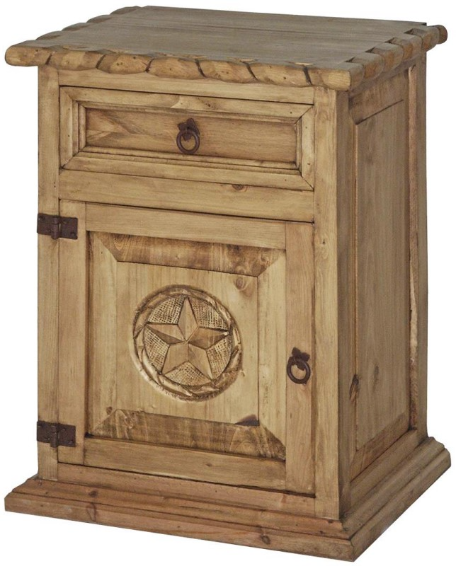 Showcase Western-inspired charm with the Country Rope and Star nightstand. Featuring intricate rope trim and a carved star accent, it adds personality to any bedside. A warm honey finish enhances its inviting look, while the left-hinged door and drawer offer convenient storage for nighttime essentials.Read More
