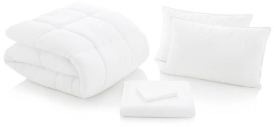 Complete bed set includes reversible down alternative comforter, brushed microfiber sheet set and soft down alternative pillow(s)
