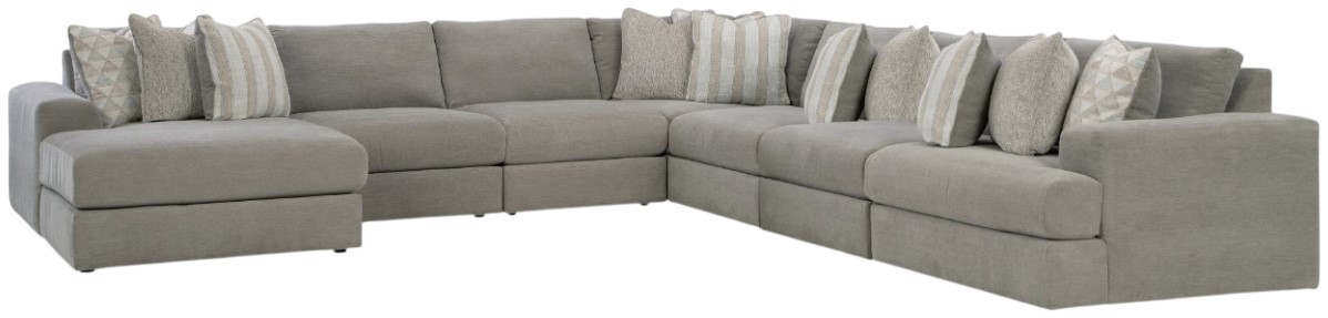 Includes 6 Modular Pieces: Left-arm facing corner chaise, 3 armless chairs, wedge and right-arm facing corner chair