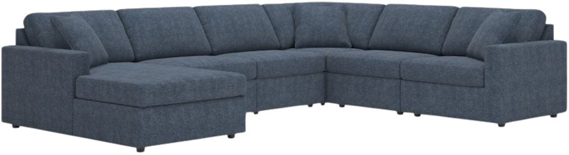 Includes 6 Modular Pieces: Left-arm facing corner chaise, 3 armless chairs, wedge and right-arm facing corner chair