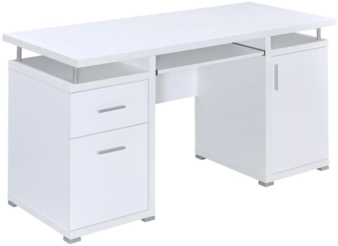 Infuse your home office with style and convenience. This contemporary computer desk features an elegant white finish and metal detailing finished in silver for a sleek, chic appearance.Read More