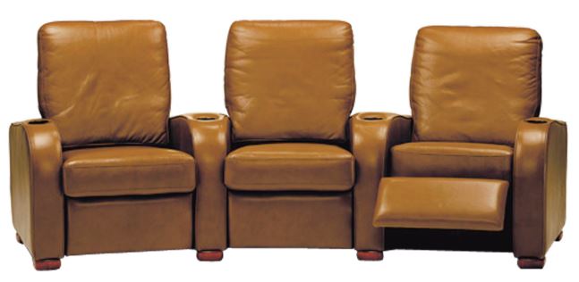 United Leather USA Home Theater Seating with track arms and dark wooden legsRead More